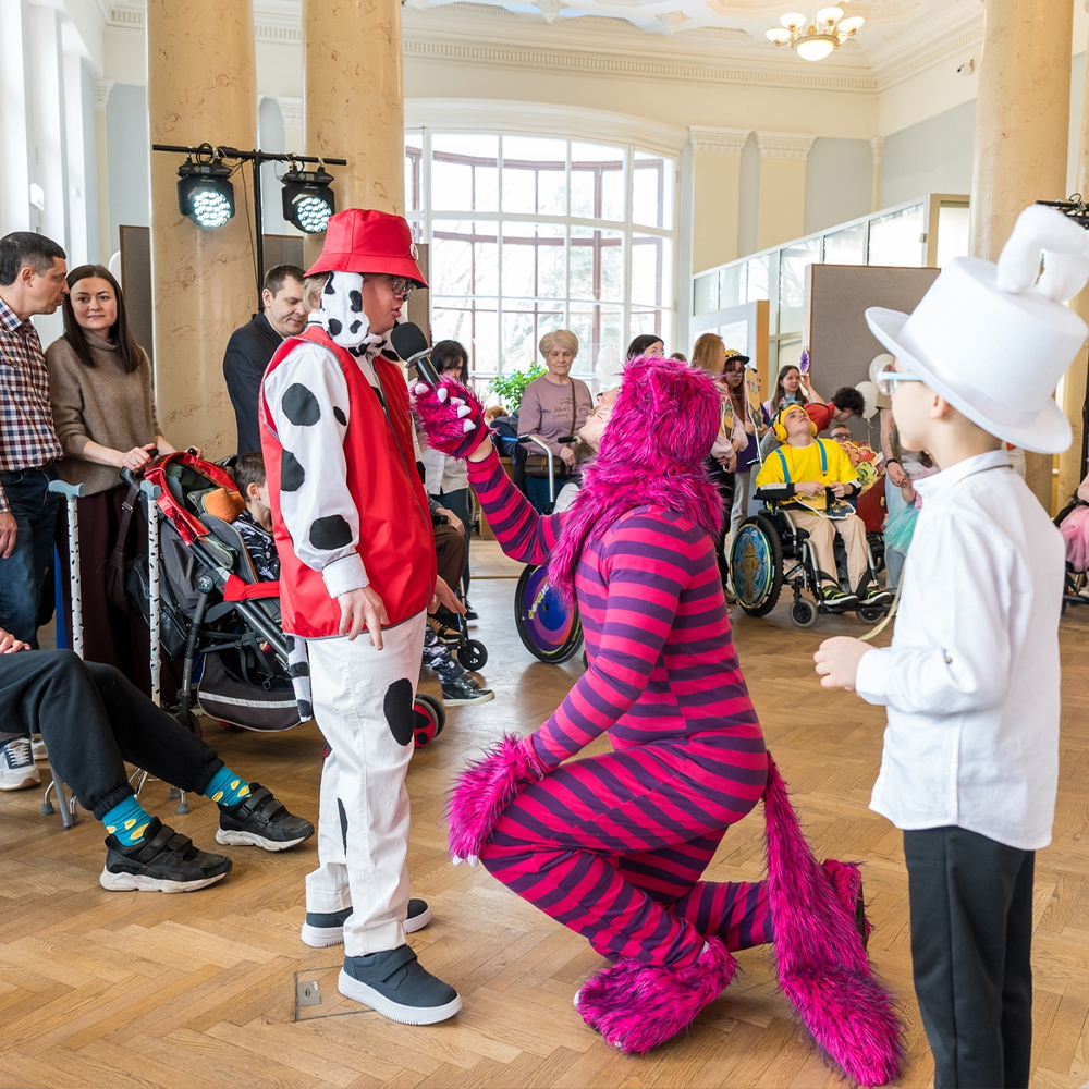 19 апреля в павильоне «Кролиководство» на ВДНХ прошёл инклюзивный костюмированный праздник «Безумное чаепитие у Белого Кролика», организованный фондом «Весна». Около тридцати детей вместе с родителями оказались в настоящей Стране чудес — с Алисой, Чеширским Котом, Белым Кроликом, шоу мыльных пузырей, аквагримом, мастер-классами по плетению венков из живых цветов и угощениями.