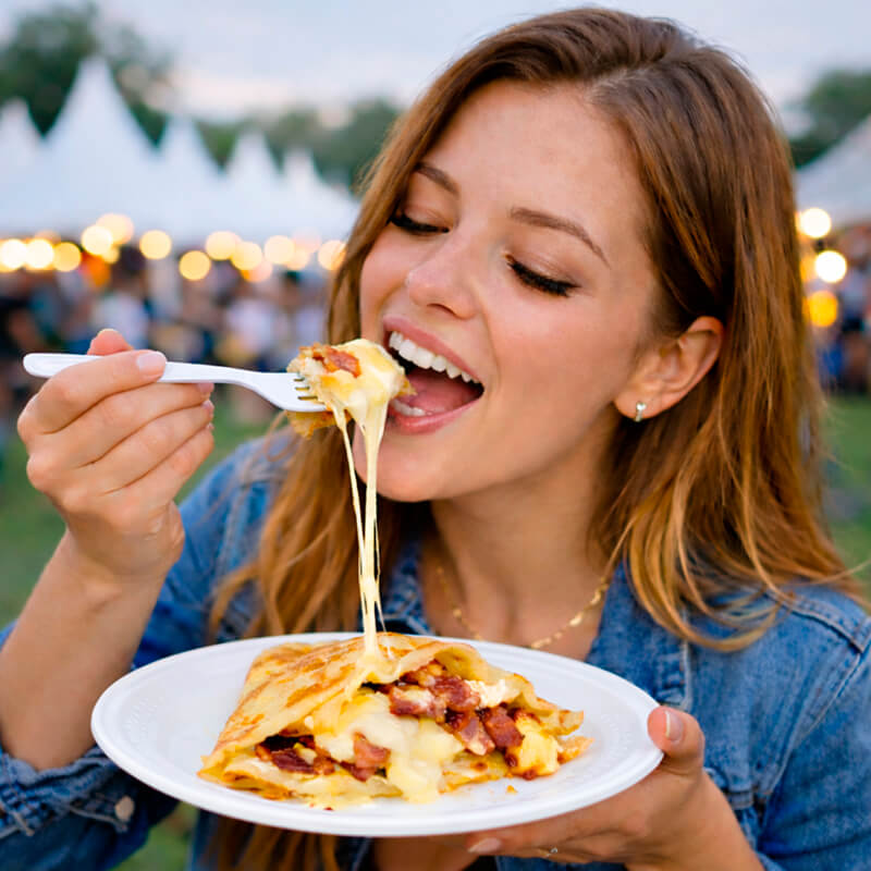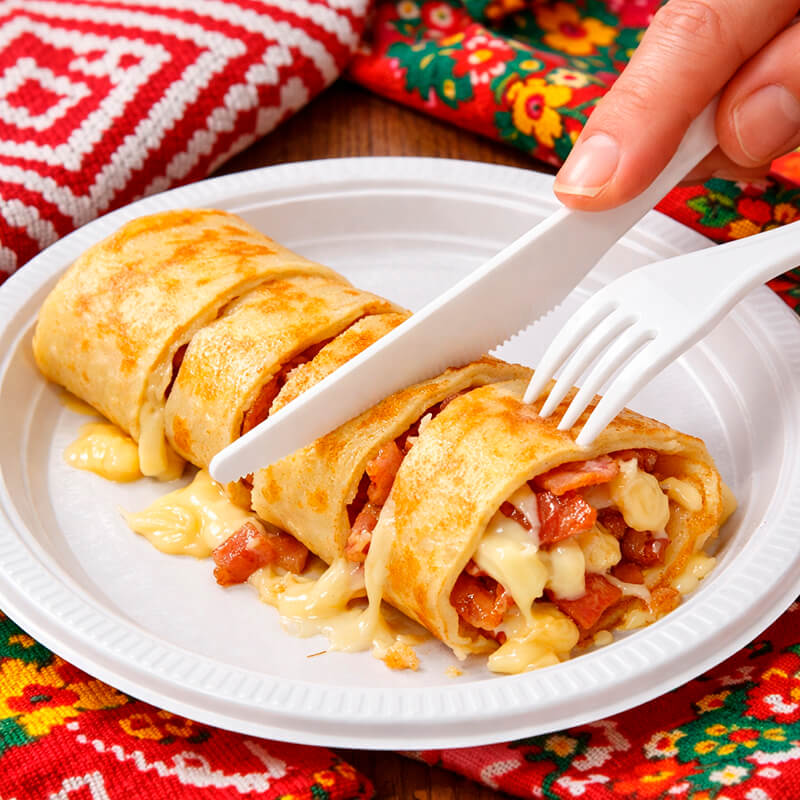 Представьте: тонкий, нежный блинчик… А внутри — сочный бекон, сырный соус и щедрая порция сыра моцарелла. Знакомый вкус пасты карбонара, но в удобной и оригинальной форме! Каждый кусочек тает во рту, раскрывая богатую палитру вкусов. Приготовление на месте - наши повара создадут кулинарное шоу прямо на вашем мероприятии: испекут блинчики у вас на глазах или проведут мастер-класс.