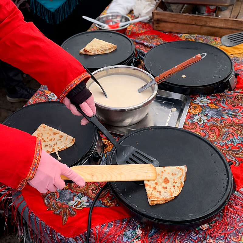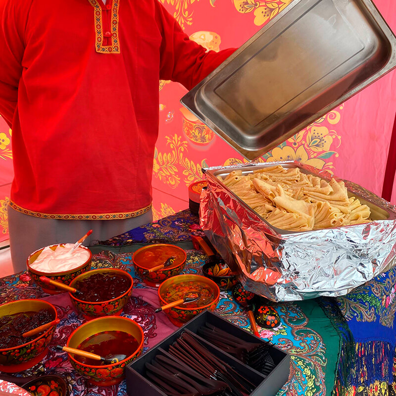 Закажите блины в уже готовом виде или арендуйте комплексную блинную станцию, чтобы угощения готовились прямо на вашем празднике. Аренда блинной станции особенно актуальна во время праздника Масленицы. А если дополнительно хочется дополнительно удивить и занять гостей, рекомендуем выездной мастер-класс по созданию блинов.