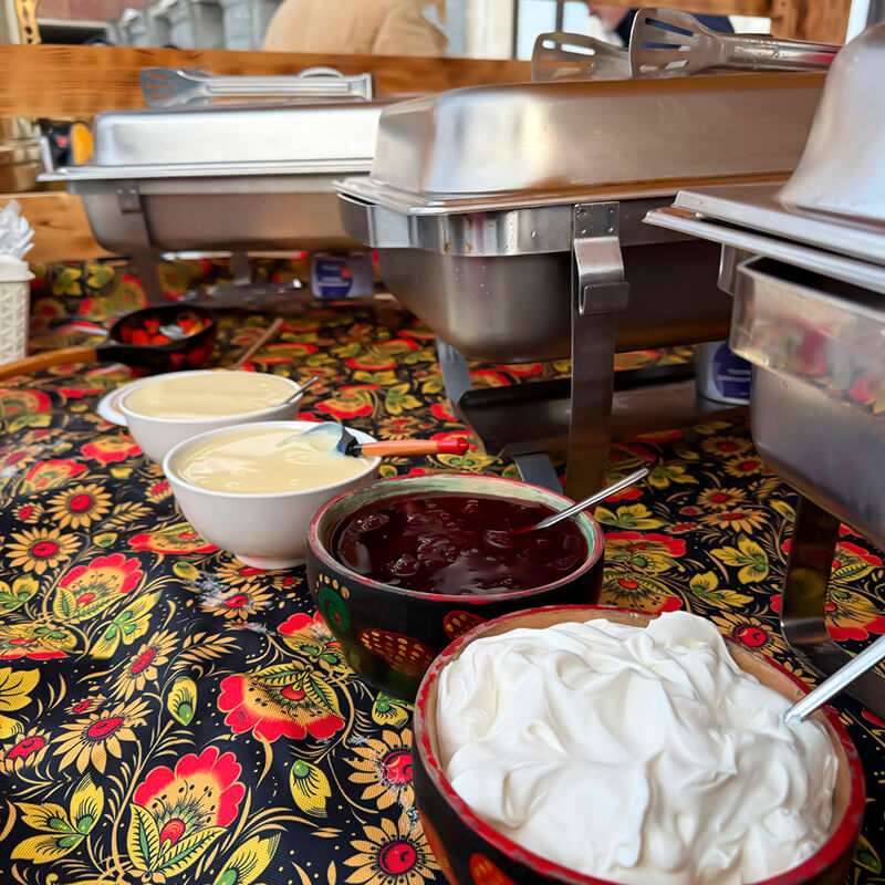 Выездная блинная станция – это отличный способ разнообразить ваше мероприятие и предложить гостям что-то новое и вкусное. Сделайте свой праздник еще ярче и интереснее с нашей помощью!