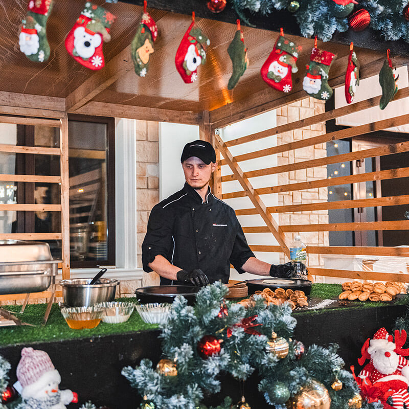 Тонкие и нежные, приготовленные из качественных ингредиентов, двух размеров на выбор: малые (10 см в диаметре) и большие (22 см в диаметре). Закажите блинную станцию на Масленицу и подарите гостям незабываемые впечатления и вкус настоящих праздничных блинов. Выберите формат: доставка готовых блинчиков или приготовление на месте. Рассчитаем индивидуальное предложение для вашего мероприятия с учётом всех пожеланий!