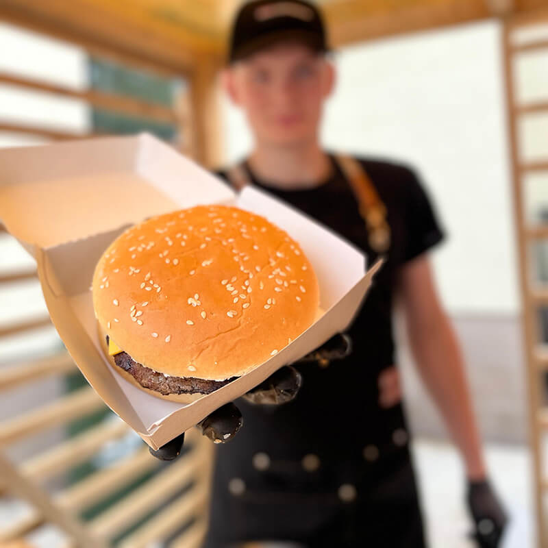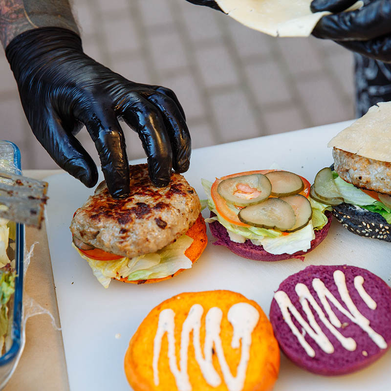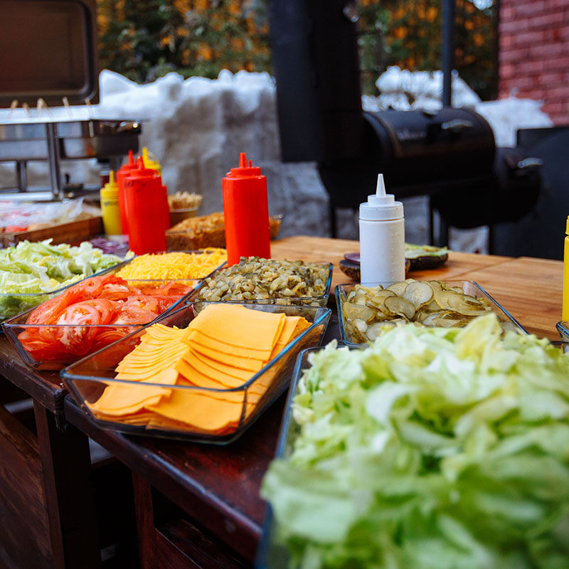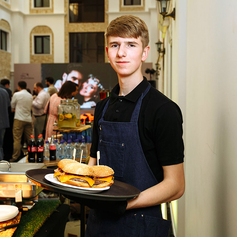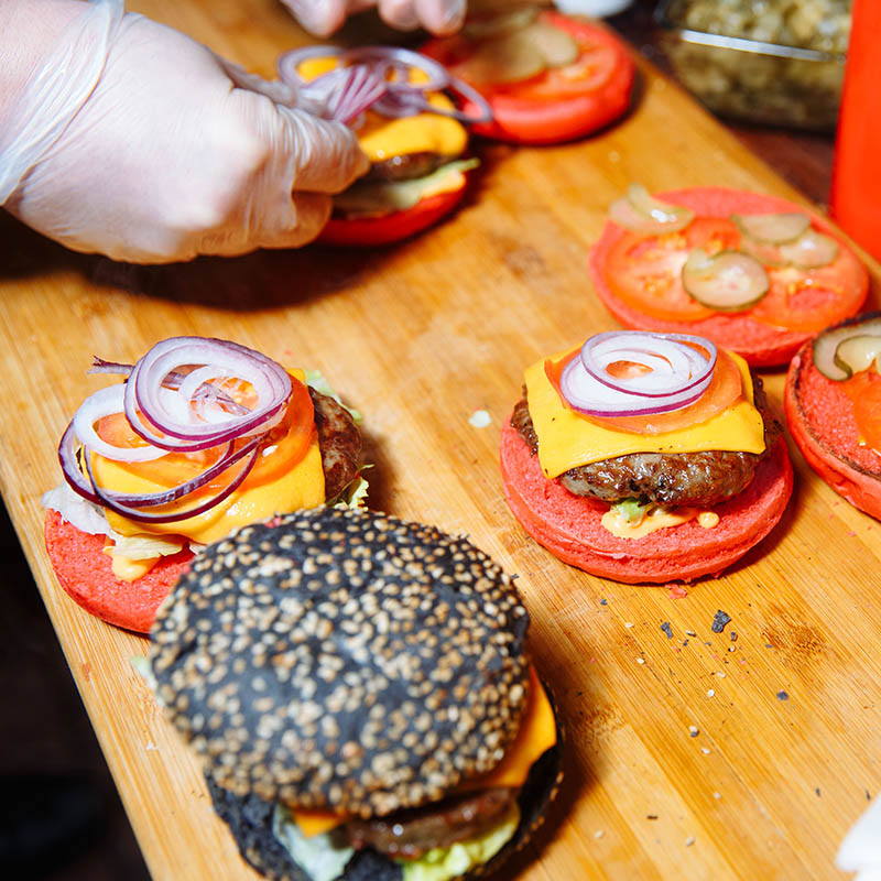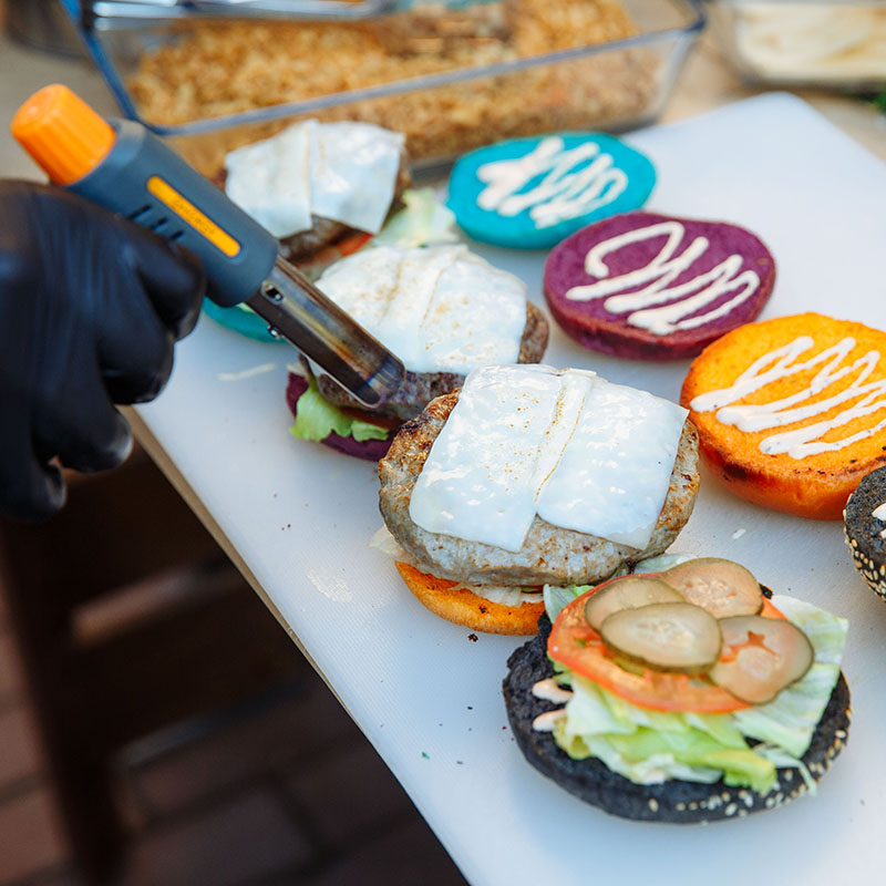 Наш сервис предлагает возможность насладиться свежими и вкусными бургерами прямо на вашем мероприятии. Мы привозим готовые блюда или устраиваем точку приготовления на месте, создавая атмосферу настоящего праздника еды. Накормите ваших гостей настоящими деликатесами, такими как традиционные русские гамбургеры с нежнейшей говяжьей котлетой, хрустящими маринованными огурцами и луком, фирменными соусами тар-тар и барбекю, украшенные свежей зеленью салата. Каждая порция весит примерно 200 грамм, что гарантирует сытость и удовольствие каждого гостя.