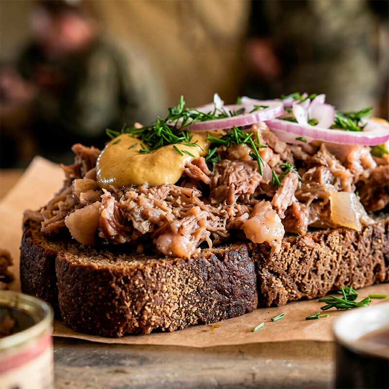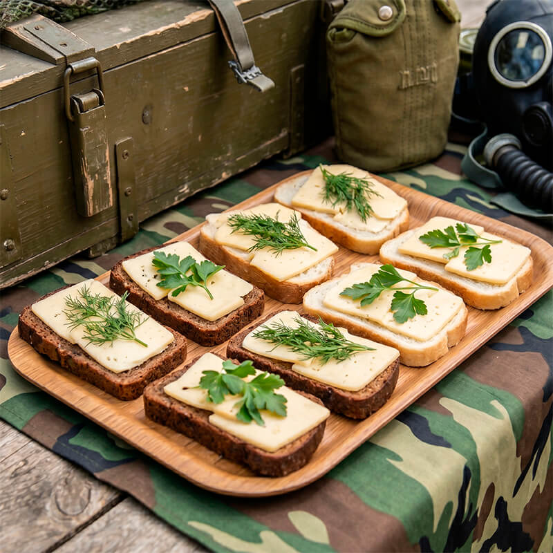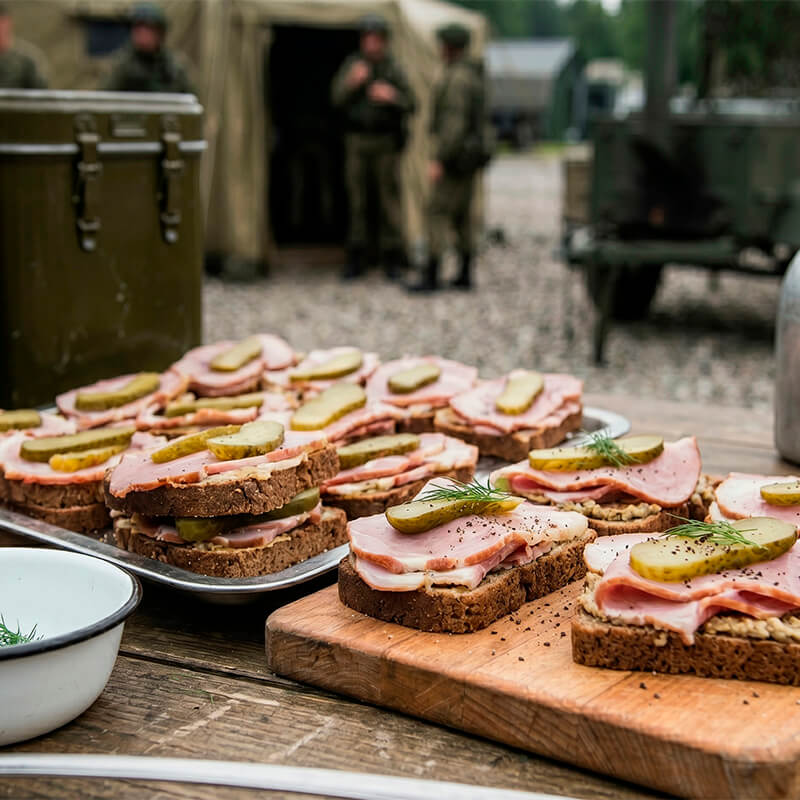 Придайте событию особый колорит с нашими «армейскими» бутербродами — простой, сытной и узнаваемой закуской, которая перенесёт гостей в атмосферу полевых привалов. Идеально подходят для тематических мероприятий (23 Февраля, 9 Мая, военно‑патриотических праздников), корпоративов в стиле «полевой кухни», пикников и выездов на природу, фуршетов и неформальных встреч.