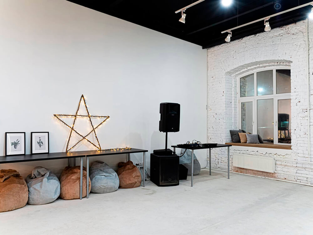 Аренда площадки Clever Loft - CLASSIC в Москве: идеальное пространство общей площадью 140 кв.м. для мероприятий до 100 человек. Расположено в Лофт-Квартале Рябовская, всего в 3-х минутах от метро Тульская. Обеспечено всем необходимым оборудованием: барная стойка, ди-джейский пульт, мебель, проектор, 2 микрофона, отдельный вход и собственный санузел. Прекрасно подойдёт для организации вечеринок, свадеб, банкетов и корпоративных мероприятий. Имеет удобную веранду и большое разнообразие декоративных и мебельных решений.