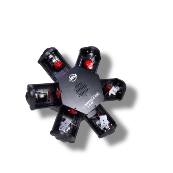 AMERICAN DJ Nucleus LED – самодостаточный световой агрегат, способный эффектно оформить танцевальную площадку умеренных габаритов. Его внутренние световые схемы управляют пятью вращающимися зеркальными элементами, создавая впечатляющие и энергичные световые потоки. "Нудис" оснащен шестью высокоинтенсивными светодиодами. Этот прожектор превосходно подойдет для клубных событий, выездных праздников и стационарных установок, обеспечивая полноценное световое шоу на всю ночь.