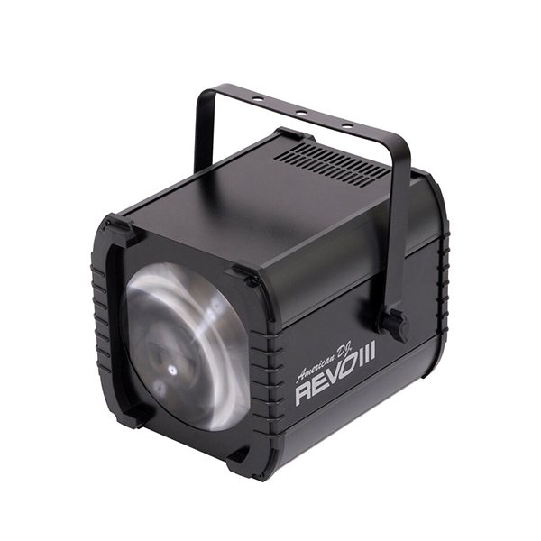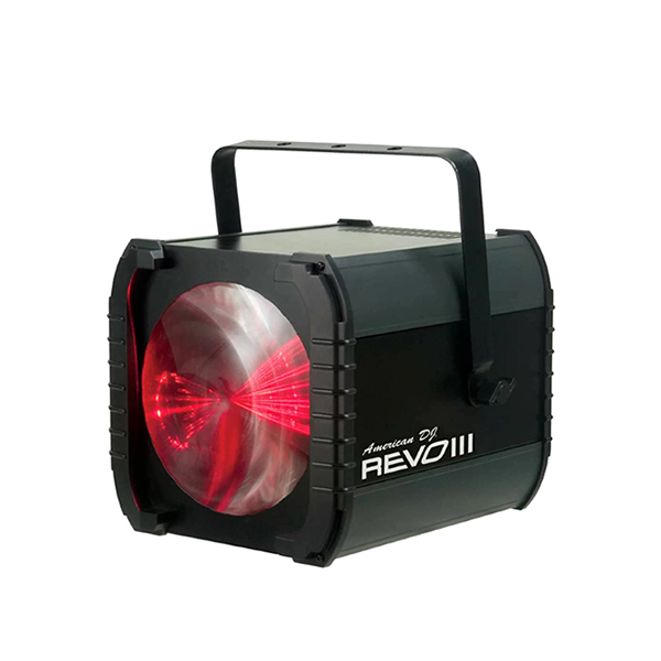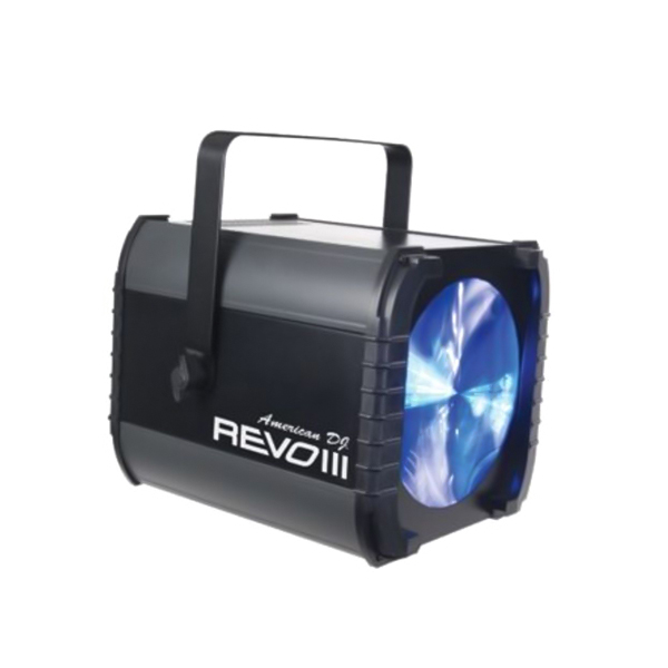 American DJ Revo 3 — компактный и яркий светодинамический прибор для клубных мероприятий, создающий интенсивные красочные лучи четырёх оттенков (красный, зелёный, синий, белый). Оснащён 392 мощными светодиодами, обеспечивает широкий угол покрытия площадки и яркость эквивалентную галогену 600 Вт. Имеет три режима работы (DMX, Sound Active, Master/Slave), эффекты стробоскопа и плавного затухания, поддержку синхронной работы с аналогичными моделями, потребляет всего 50 Вт электроэнергии, обладает ресурсом светодиодов до 100 000 часов непрерывной эксплуатации. Весит около 5 кг, комплектуется крепёжным кронштейном для удобной установки.
