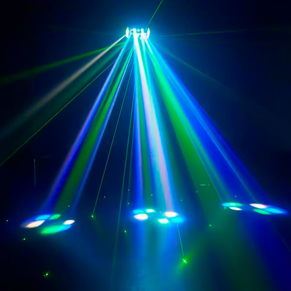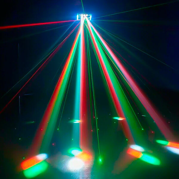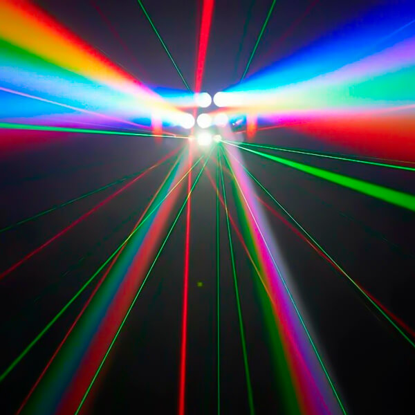 Преимущества проката:- Красочные спецэффекты: Яркие лазерные лучи красного и зелёного цветов (100 мВт и 50 мВт соответственно) образуют выразительные движущиеся узоры и геометрические фигуры.
