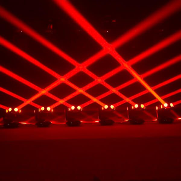 Устройство оборудовано шестью яркими RGBW светодиодами по 40 Вт каждый, способными воспроизводить плавные переходы оттенков и интенсивные вспышки. Система оснащена высокоточными линзами, формирующими четкий луч с углом распространения 2°. Пользовательские настройки включают регулировку яркости, интенсивности стробоскопа и направления освещения.