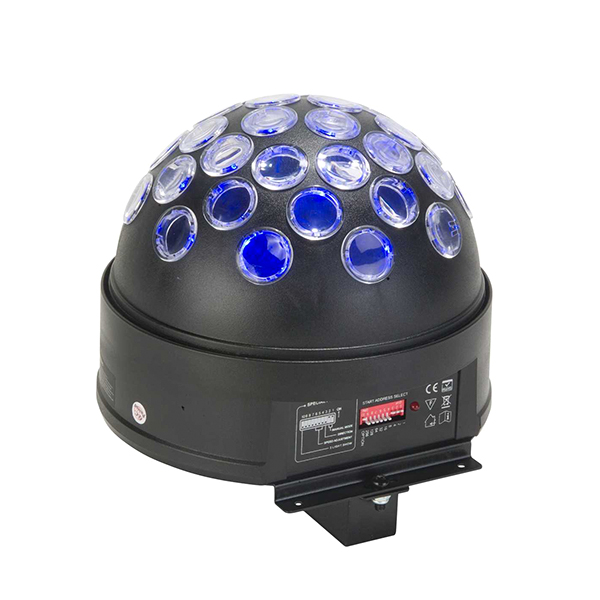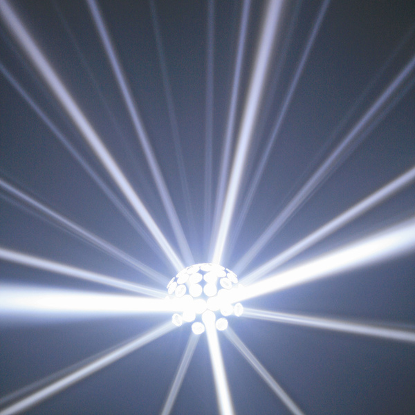 JB Systems Solar White — компактная цветомузыкальная полусфера с потребляемой мощностью 10 Вт и ярким белым светодиодом 3 Вт, создающая эффект вращающегося зеркального шара с 34 лучами. Обладает ресурсоемкими LED-диодами с длительностью службы 50 000 часов, регулируемым диммером и эффектом стробоскопии. Управление возможно через звуковую активацию, протокол DMX-512 и режим Master/Slave. Размеры прибора составляют 179×210×210 мм, а вес всего 1,8 кг.