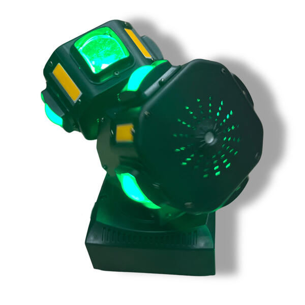 REXUS MH-240 "Minion" представляет собой передовой сценический светильник, создающий завораживающие визуальные шоу на танцполе. Устройство генерирует мощное и глубокое освещение, что позволяет формировать эксклюзивную атмосферу. Аппарат выполнен в форме оригинальной «двойной тарелки» и оборудован лазерами для создания динамичных узоров, а также стробоскопом, обеспечивающим импульсное мерцание, идеально акцентирующее ритм музыкального сопровождения. Он оптимален для применения в ночных клубах, на дискотеках, концертах и различных мероприятиях, где требуется эффектное светомузыкальное оформление. Благодаря своей компактности и эргономичности, прибор чрезвычайно удобен в эксплуатации.