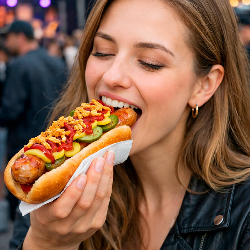 Мы привозим готовые свежие хот-доги или организуем точку приготовления прямо на мероприятии, чтобы гости получали блюдо горячим с гриля. Работаем по Москве и Московской области. Закажите датский хот-дог с куриной сосиской «Гриль» — практичное и вкусное решение для выездного кейтеринга.