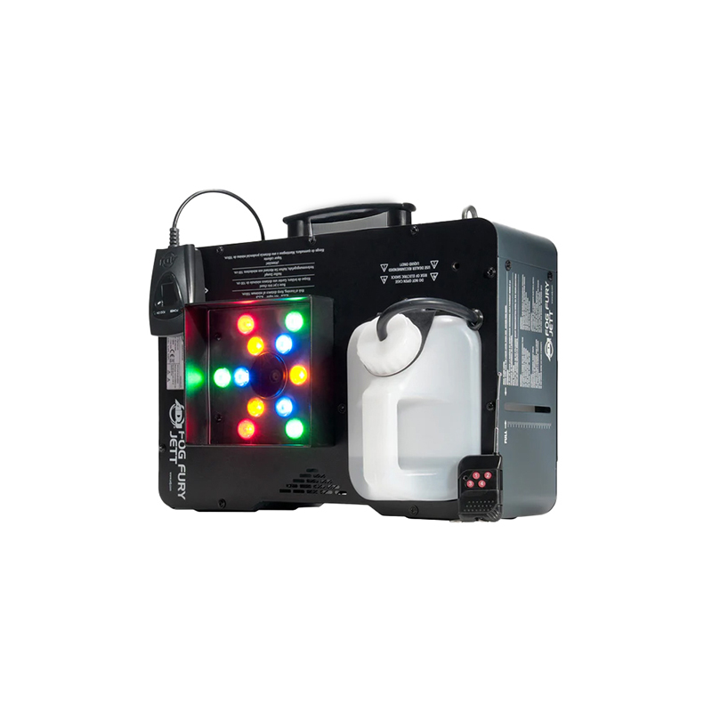 Fog Fury Jett — профессиональный высокоскоростной генератор дыма с подсветкой, создающий зрелищные дымовые эффекты с цветным свечением. Генератор создает равномерный сухой туман с цветной подсветкой, делая световые лучи (прожекторы, лазеры) визуально выразительными. Возможна вертикальная/горизонтальная установка и выбор направления дыма.