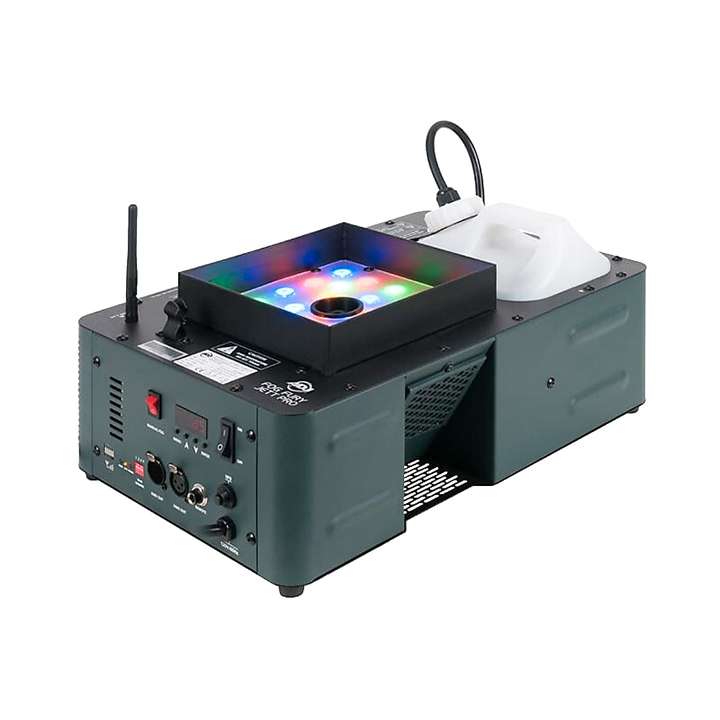 Fog Fury Jett Pro — вертикальная дым-машина с LED-подсветкой, выпускающая мощные струи окрашенного дыма на расстояние до 12 метров. Оснащена 28 светодиодами (RGBUW), обеспечивающими эффектные световые акценты. Быстро нагревается за 9 минут, работает непрерывно до 16 минут, образуя объём до 600 000 кубических футов дыма. Управляется дистанционным пультом и поддерживает интеграцию с системами DMX/WiFLY-EXR. Отлично подходит для концертных выступлений, театральных постановок и специальных мероприятий.