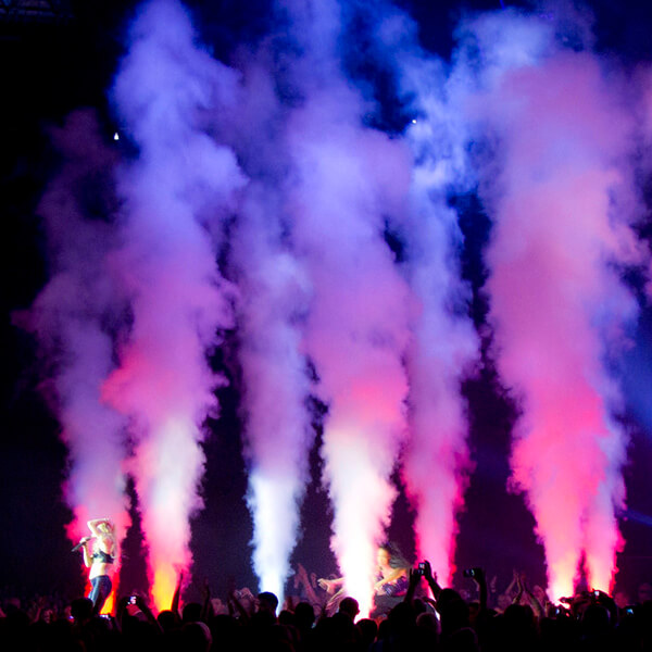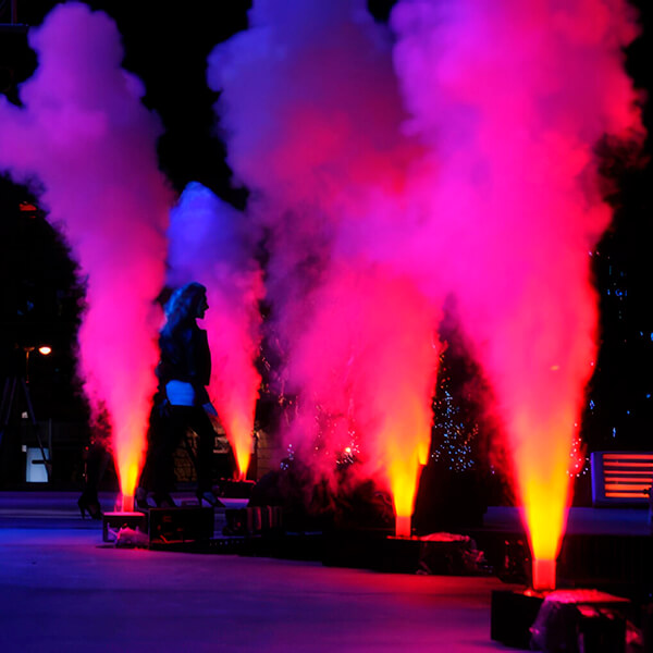 - Высота эффекта: эффект распространяется вертикально вверх на расстояние до 6-8 м, визуально расширяя сцену и привлекая внимание зрителей.