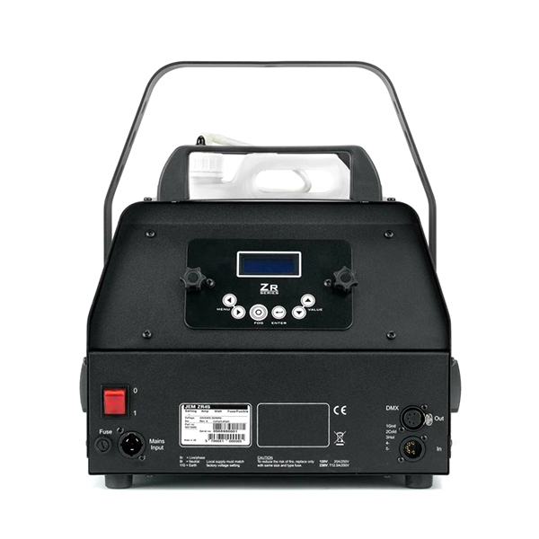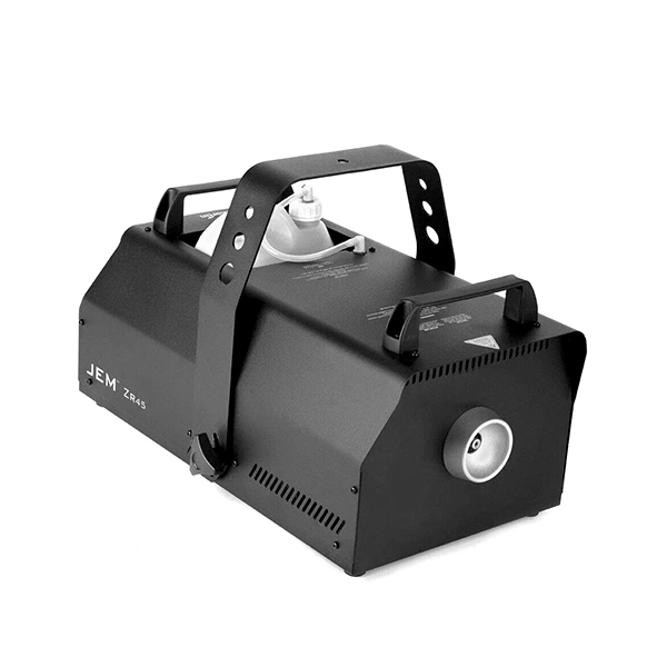 JEM ZR45 – флагманская дым-машина для быстрого заполнения сцен и клубных зон густым дымом. Вырабатывает до 1300 м³ дыма в минуту, имеет цифровой пульт DMX, низкое энергопотребление и быстрый прогрев (9-10 минут). Масса – всего 1,77-2,27 кг, габариты – 602×395×306 мм.
