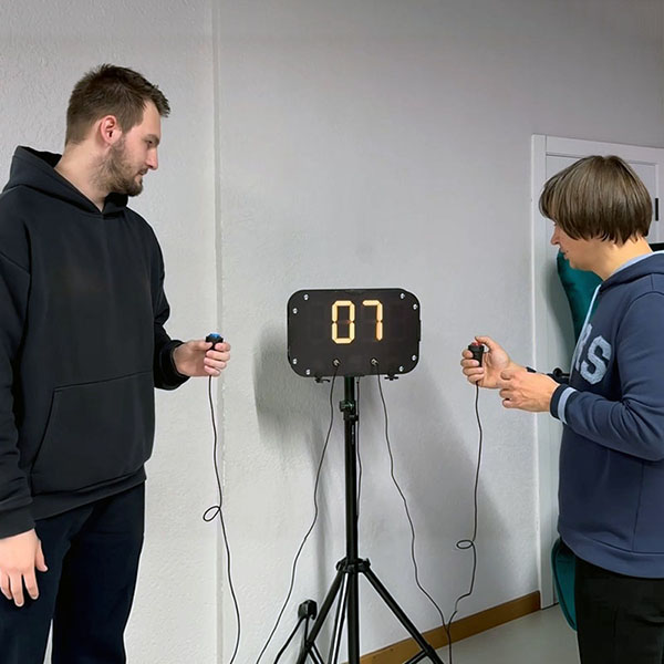 «Поймай секунду» — это интерактивная игра‑аттракцион, проверяющая скорость реакции, точность и внимательность игроков. Игра захватывает своей динамикой и азартом: скоростный формат и необходимость мгновенной реакции создают настоящее напряжение. При этом правила предельно просты и понятны с первого раза, а соревновательный элемент между двумя игроками добавляет интереса.