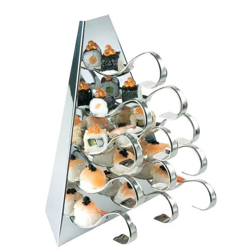 Этажерка Пирамида 12 ложек+20 шпажек Н=27 L=22 В=14 см см применяется для подачи закусок, подчёркивая аккуратность сервировки. Благодаря продуманной форме изделие удобно для ресторанного обслуживания и кейтеринга. Такой аксессуар подчёркивает стиль и завершает композицию сервировки.
