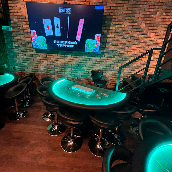 Классический покерный стол придаст вашему мероприятию элегантность и стиль, обеспечивая участникам возможность наслаждаться настоящей атмосферой казино.