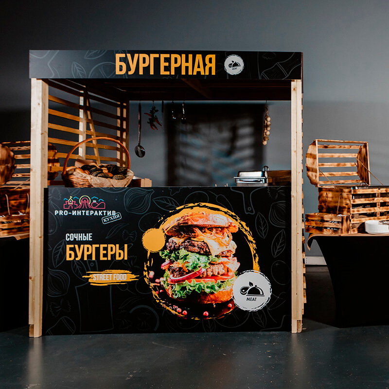 Свежесть и качествоНаслаждение начинается с первого укуса: наши шеф-повара привезут готовую продукцию или устроят мини-кухню прямо на площадке вашего мероприятия. Гостям будут предложены свежеприготовленные блюда, наполненные ароматом и вкусом настоящего фаст-фуда премиум-класса.