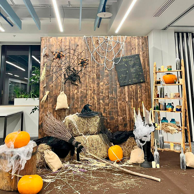 Эта фотозона приглашает вас в уютный и волшебный мир осеннего Хэллоуина! Здесь вы сможете окунуться в атмосферу загадочности и волшебства этого праздника.