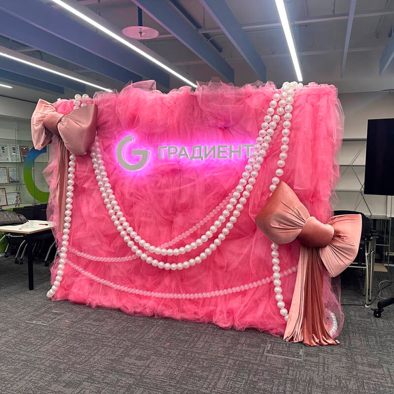 Фотозона из фатина – это настоящая находка для создания волшебной и незабываемой атмосферы на любом мероприятии. Она представляет собой конструкцию, состоящую из множества слоев мягкого фатина. Фатин создает нежные, воздушные и полупрозрачные складки, которые придают фотозоне легкость и изящество.