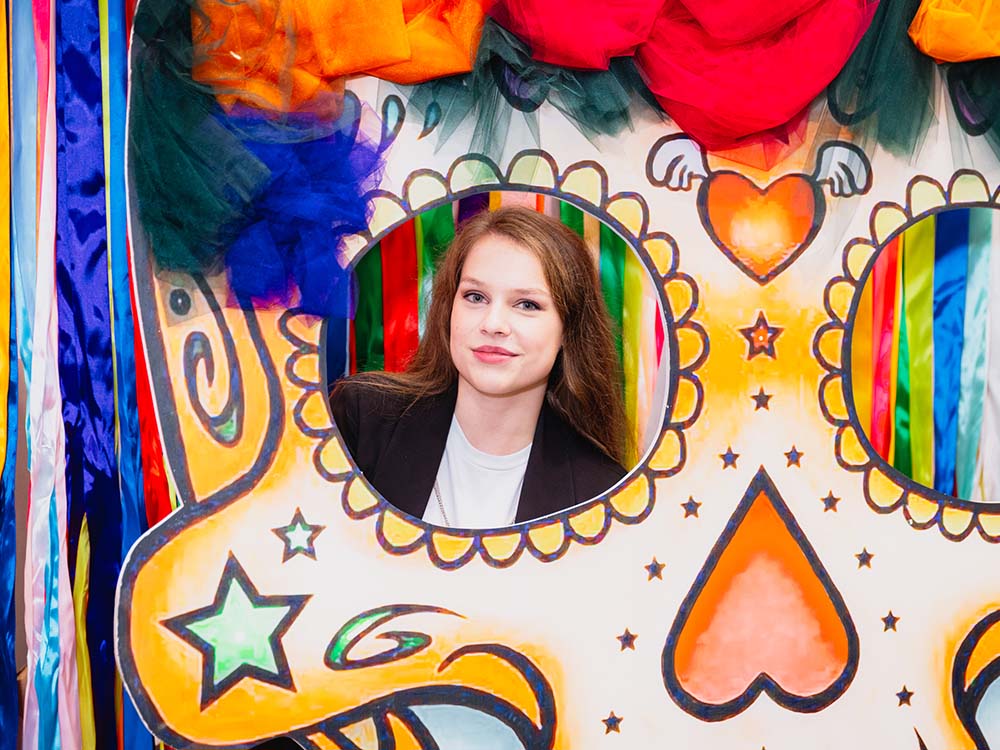 Декор фотозоны дополнен струящимся дождиком, LED-гирляндами, искусственным кактусом, а венчает всё дизайнерский рисунок, который станет настоящим украшением.