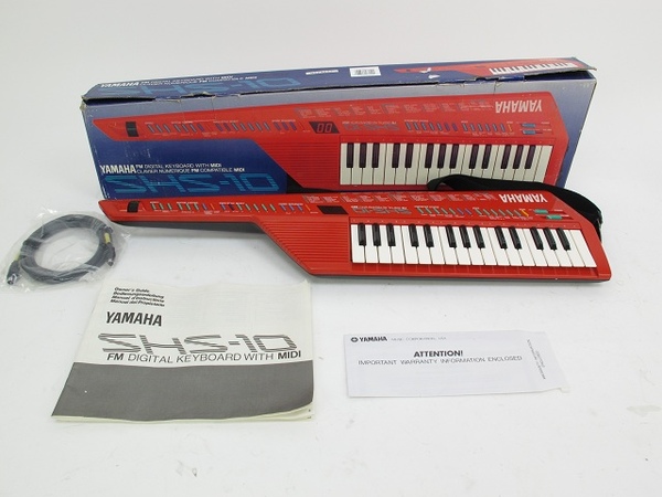 Возьмите в аренду культовый синтезатор-кейтар Yamaha SHS-10. Мы располагаем шестью единицами: четырьмя красными, одной цвета слоновой кости и одной темно-серой. Этот винтажный инструмент 1988 года, известный как "расческа" благодаря своей форме, является настоящим наплечным символом 90-х. Он был неотъемлемой частью выступлений поп-групп и сегодня высоко ценится как эффектный атрибут. Идеальное решение для стилизованных фотосессий, оформления welcome-зон, а также как аутентичный реквизит для кинофильмов и телевизионных проектов в эстетике "диско" и "нью-вейв". Этот японский мини-синтезатор поставляется в трех цветовых вариациях с оригинальным тканевым ремнем и способен работать как от батареек, так и от адаптера питания.