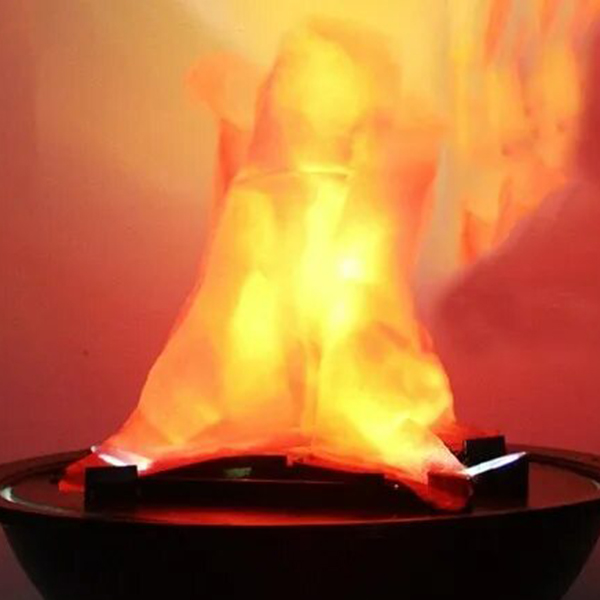 - Широкая чаша, из которой поднимаются тканевые языки пламени, придающие естественный эффект горящей стихии.