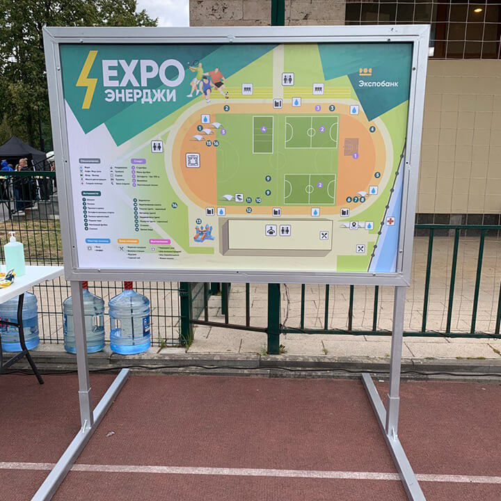 Организуйте удобное информирование гостей вашего мероприятия с помощью наших информационных стендов. Мы доставим, установим и разместим карты, схемы и необходимую информацию.