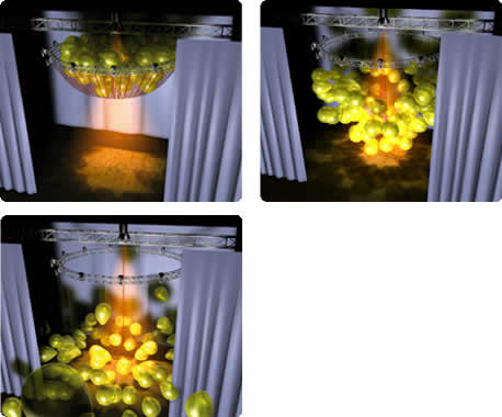 Востребованная технология для зрелищного появления или исчезновения предметов на театральной площадке. Она позволяет моментально опустить задник, проекционный экран или тонкую вуаль, не требуя никакой специальной обработки используемого полотна. При этом подходит абсолютно любая драпировка, будь то тяжелый бархат, мягкий плюш или блестящий атлас. Данная система оптимальна для организации по-настоящему запоминающихся эпизодов, включая эффект двойного сброса или плавное падение невесомых объектов — например, конфетти, кусочков попкорна или воздушных шаров, которые завораживающе "плывут" над сценой.