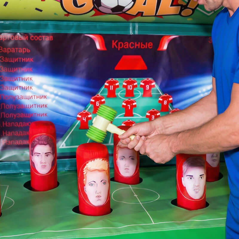 Футбольная версия аттракциона «Колотушка Крот» — это увлекательная игра для всей семьи и компании друзей. Задача игрока — бить по мячу, когда футболисты выпрыгивают из углублений на батуте. Побеждает тот, кто наберёт больше очков. Игра подходит для использования как в помещении, так и на свежем воздухе.