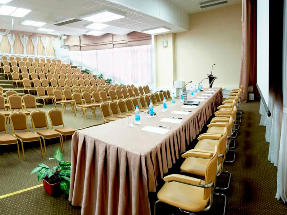 Аренда конференц-зала в Конгресс центре Тула — это идеальное решение для проведения мероприятий и торжеств. Просторный зал площадью 320 м² с удобным расположением амфитеатром позволяет комфортно разместить до 250 гостей. Зал оснащен современным оборудованием, включая систему звукоусиления Dolby, видеопроекционное оборудование и высокоскоростной Wi-Fi. Отдельное фойе для регистрации гостей и банкетные залы для кофе-брейков и фуршетов делают его идеальным местом для проведения конференций, симпозиумов, шоу и специальных акций.