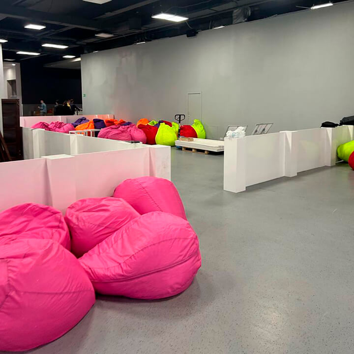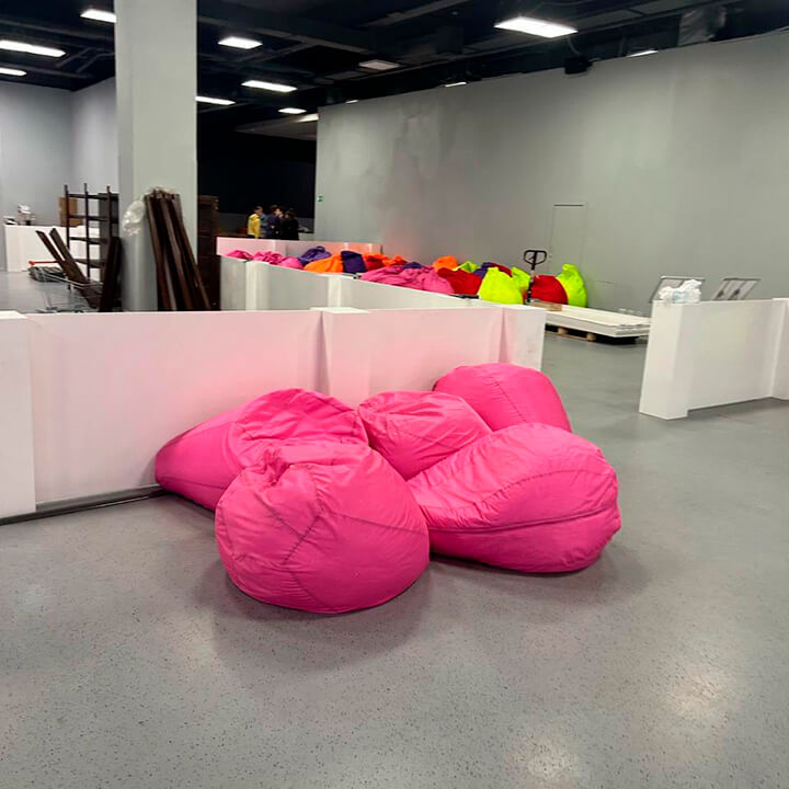 Чтобы доставить вам чистые пуфики, мы используем полиэтиленовые одноразовые чехлы, для улицы и помещений