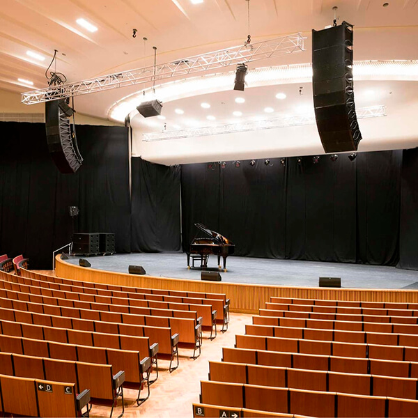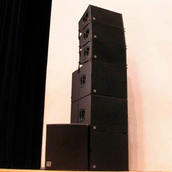 - Громкоговоритель Q1: Пассивный двухполосный линейный массив с двумя низкочастотными драйверами диаметром 10 дюймов и одним компрессионным ВЧ-драйвером диаметром 1,3 дюйма. Оптимален для средних и больших помещений.