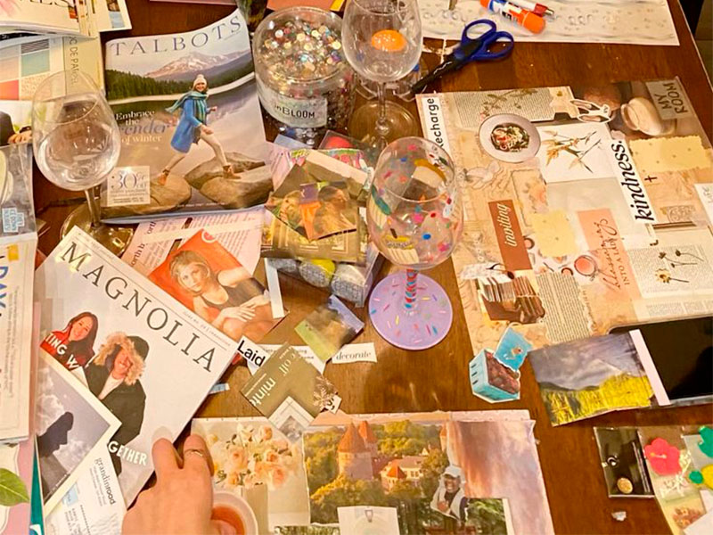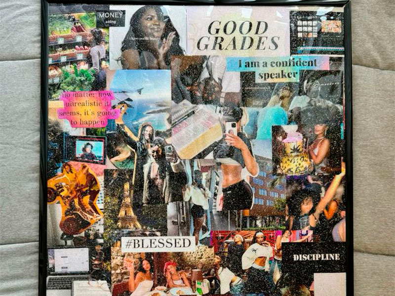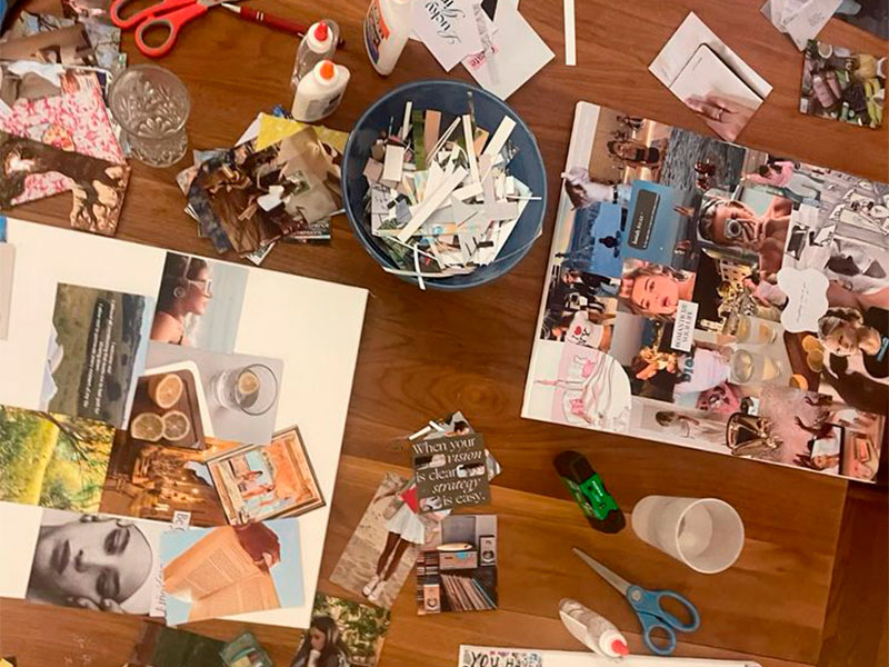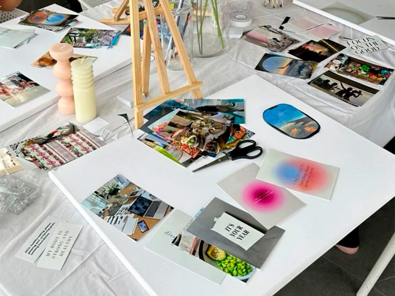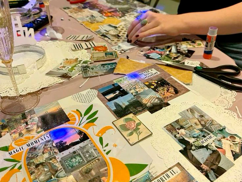 Под руководством опытного наставника вы создадите собственный коллаж, наполненный изображениями, словами и символами, отражающими ваши мечты.