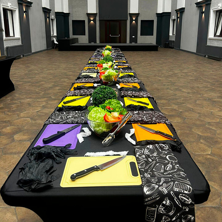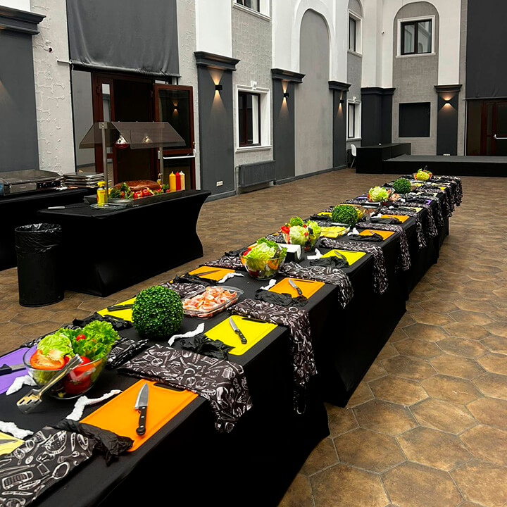 Организуем мастер-класс по приготовлению гигантских бургеров! Опытный повар научит вас и ваших гостей создавать сочные и ароматные бургеры. Этот увлекательный процесс придётся по вкусу участникам любого возраста, ведь готовка — это не только просто, но и интересно! В завершение мастер-класса вы сможете украсить свой бургер бенгальскими огнями и сделать яркие фотографии на память.