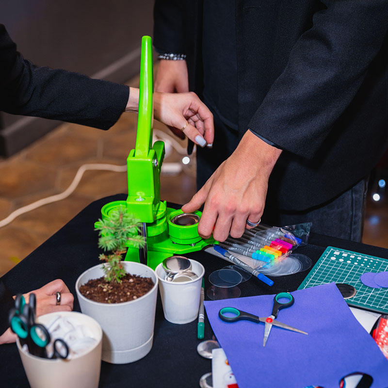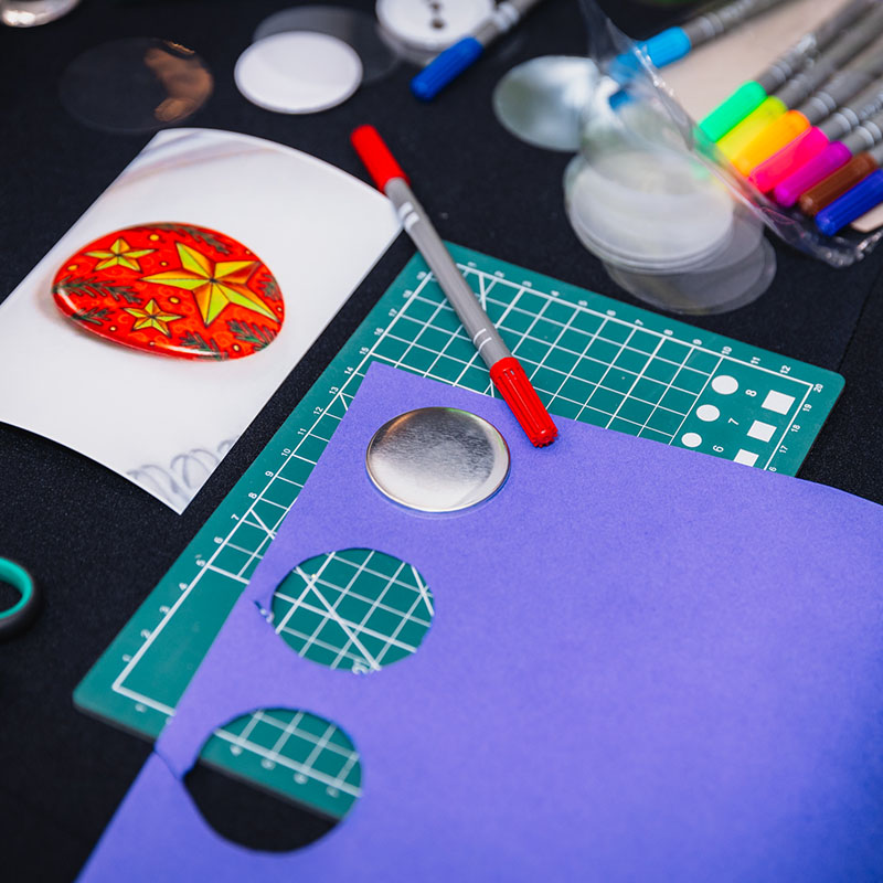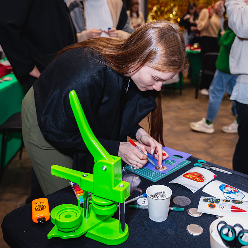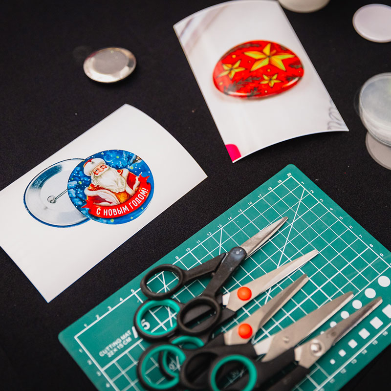 В преддверии новогодних праздников мы предлагаем необычное занятие, которое украсит любое мероприятие — от семейного торжества до корпоративного вечера. Под руководством опытного мастера гости освоят технику создания стильных значков с эффектным «закатным» дизайном. Каждый участник уйдет с уникальным сувениром, сделанным собственными руками.
