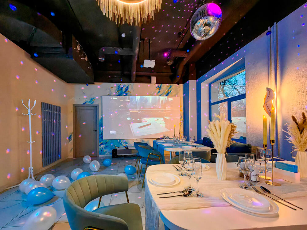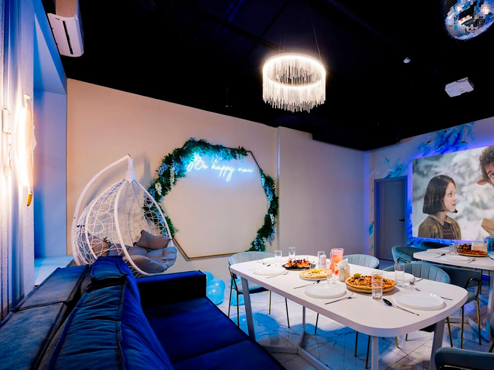 Здесь есть всё необходимое для успешного мероприятия: караоке, хорошая акустика, световая установка, проектор с большим экраном. Вам разрешено приносить свою еду и напитки, обеспечивая максимум комфорта и индивидуальности. Хотите продлить удовольствие? При бронировании зала на 4 часа и более получите дополнительный час бесплатно (кроме субботы).