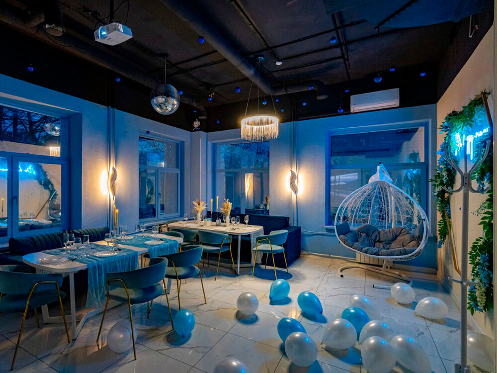 Зал Happy в Memory Place — прекрасный выбор для проведения мероприятий в Москве. Просторный лофт с дизайном в нежных бело-голубых цветах располагает к отдыху и веселью. Большие окна, стильная мебель и уникальные белые качели придают помещению особый шарм. Прекрасно подойдет для празднования любого повода с группой до 20 гостей.
