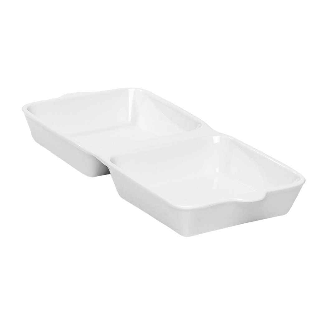 Менажница двойная Regina 30х14 см см идеально подойдёт для подачи закусок на банкетах и фуршетах. Благодаря продуманной форме изделие удобно для ресторанного обслуживания и кейтеринга. Такой аксессуар подчёркивает стиль и завершает композицию сервировки.