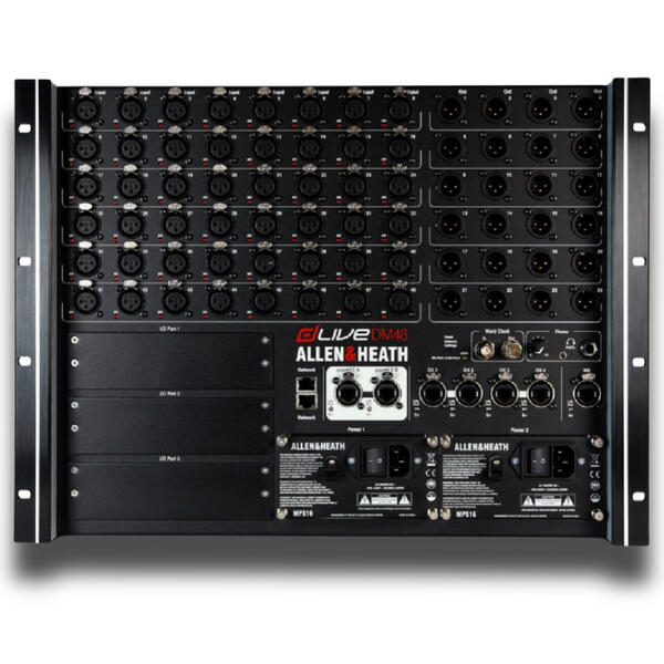 Allen & Heath dLive DM48 — это гибкий удаленный интерфейс ввода/вывода, разработанный для цифровых микшерных систем dLive. Он не только значительно увеличивает количество аналоговых входов и выходов для вашей консоли, но и может быть использован как полноценная дистанционно управляемая микшерная станция, совместимая с платформами iOS, Android, Mac и Windows. Каждый канал оснащен автоматическим фейдером, что предоставляет инженерам звука оптимальное сочетание современных цифровых возможностей и интуитивного аналогового управления. Сведение можно осуществлять на расстоянии, используя специализированное программное обеспечение на любом мобильном устройстве или персональном компьютере.