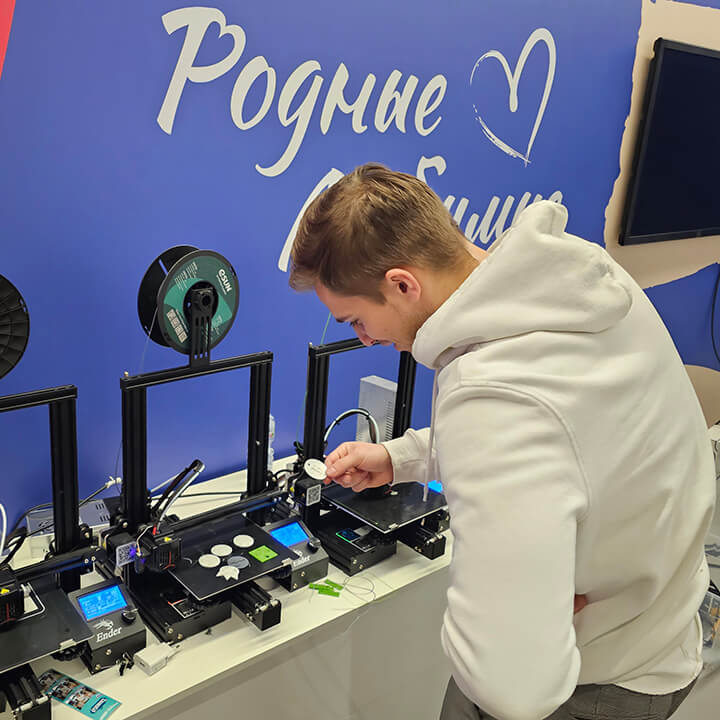 Модели печатаются от 40 до 90 минут, ребята забирают готовые медальки |