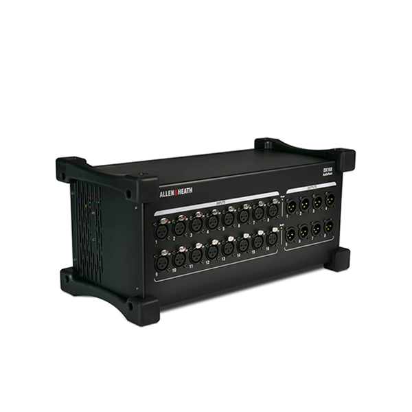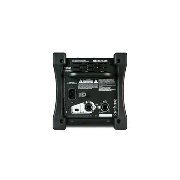Аллен Хит DX-168 DLive — модуль расширения для консолей dLive S/C Class. Прочный корпус с ручкой и резиновыми амортизаторами, установка возможна на пол или в 19" рэк. Размеры: 185×410×190 мм, масса: 4.6 кг. Оснащён 16 микрофонными входами, 8 линейными выходами, двумя Ethernet-портами. Работает по протоколу DX на частоте 96 кГц, кабель CAT5e до 100 м. Каскадируется до 6 единиц, обеспечивая максимум 96 входов и 48 выходов.