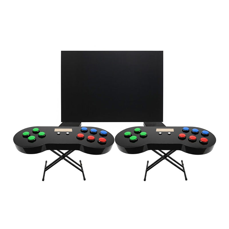 Огромные джойстики воссоздают атмосферу игровых залов 90-х! Их внушительные размеры и эргономичная конструкция позволяют двум игрокам одновременно управлять одним джойстиком, превращая каждую игру в захватывающее приключение, требующее слаженности, быстрой реакции и настоящей командной работы.