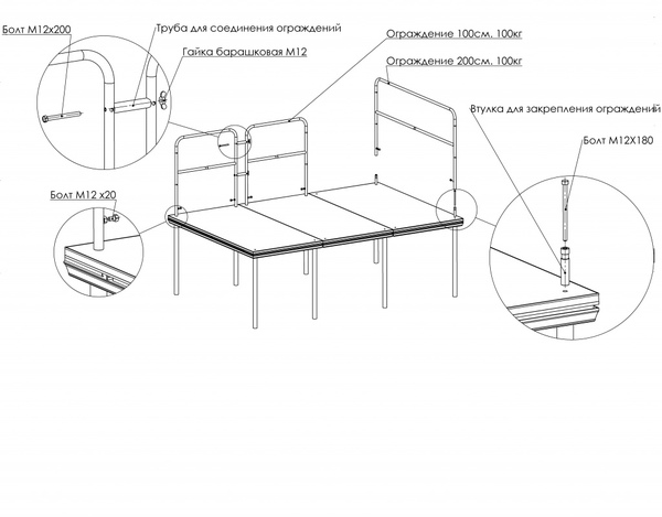 Высота подиумов/трибун, для которых предназначены перила: от 80 см до 1,2 м