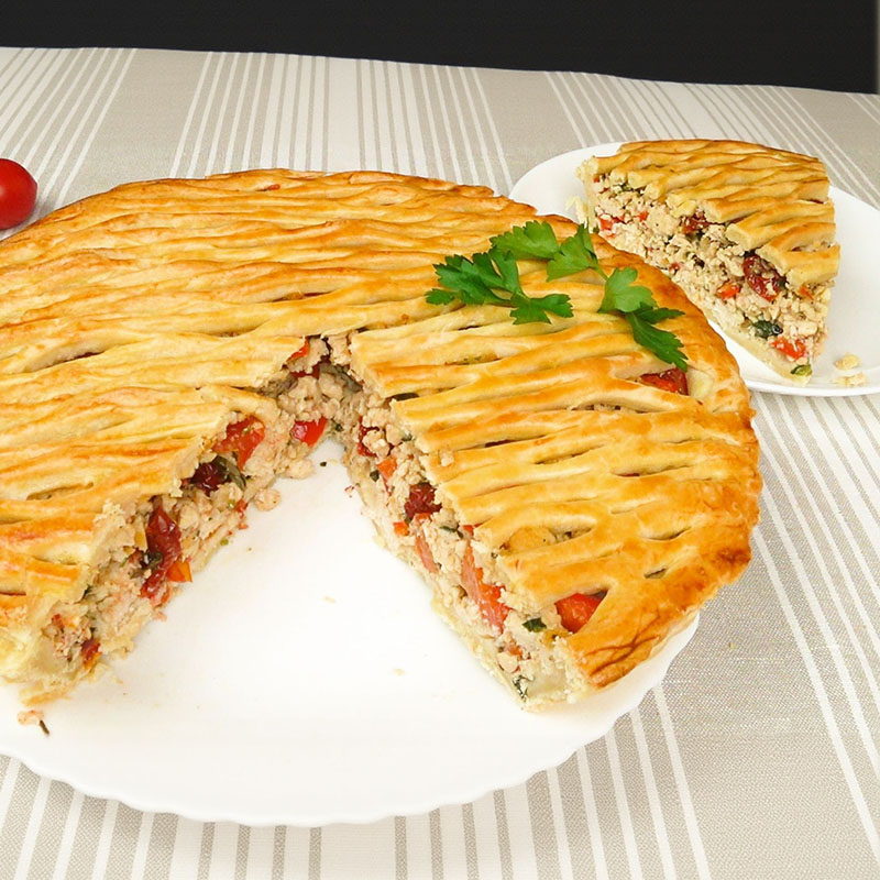 Пирог с курицей и овощами-гриль