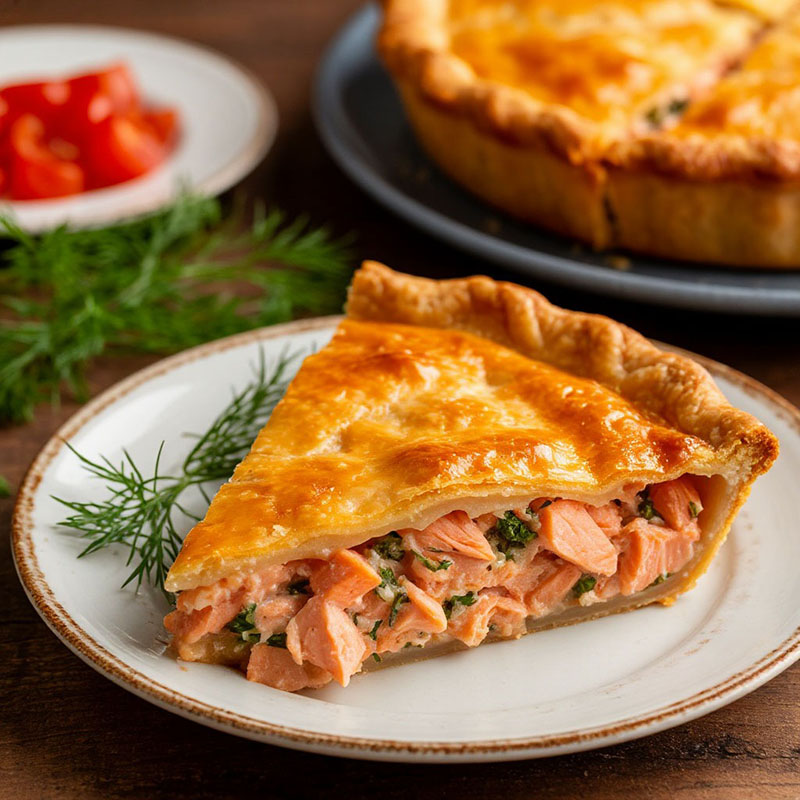 Нежный пирог с лососем в тонком тесте — сочетание изысканного вкуса и элегантной подачи. Идеально дополнит меню вашего мероприятия, оставив у гостей приятное гастрономическое впечатление.