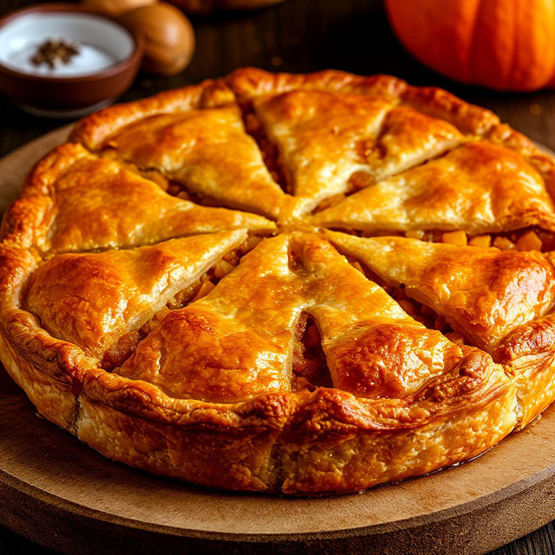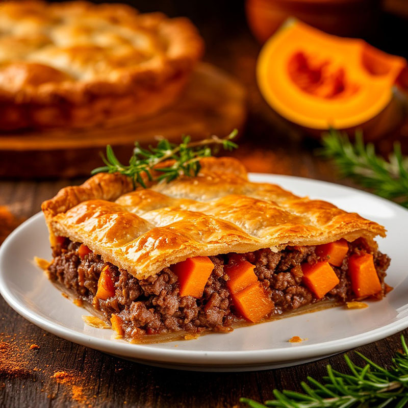 Пирог приятно удивит даже искушенных гурманов: в нем неожиданно удачно сошлись сытность мяса и деликатная сладость тыквы. Сочные кусочки мяса, томленные до мягкости, переплетаются с нежными ломтиками тыквы, которая при запекании приобретает медовый оттенок вкуса. Тесто получается румяным и хрустящим, а общий аромат блюда — теплым и манящим, с легкими пряными акцентами.