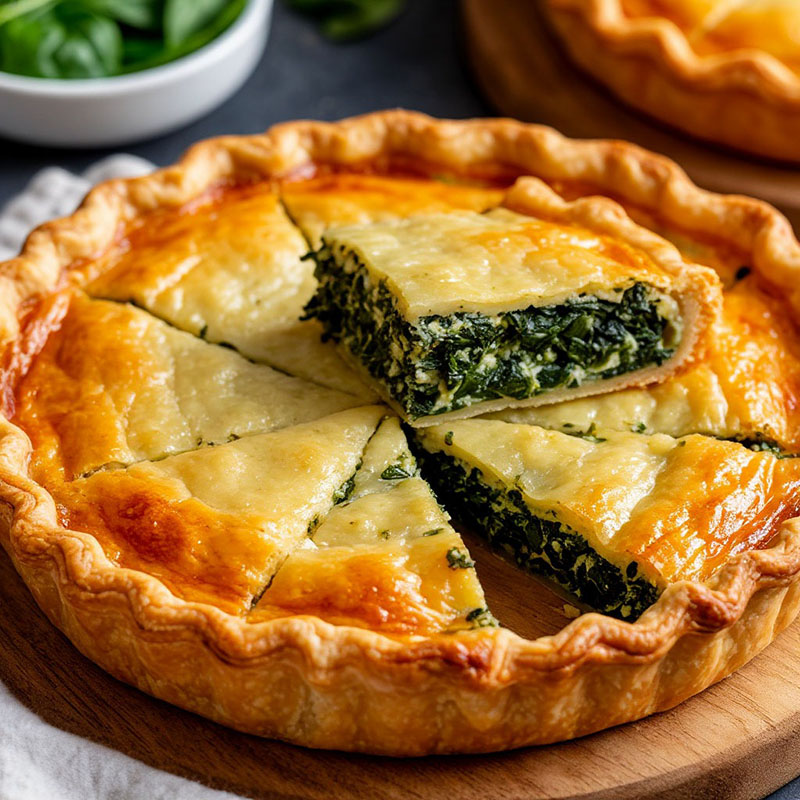 Пирог сочетает мягкую текстуру шпината и тягучую сырную начинку, обрамленные золотистой хрустящей корочкой. Умеренная солоноватость сыра гармонично оттеняет легкую свежесть зелени. Блюдо удобно для порционной подачи, сохраняет презентабельный вид и температуру в течение мероприятия.