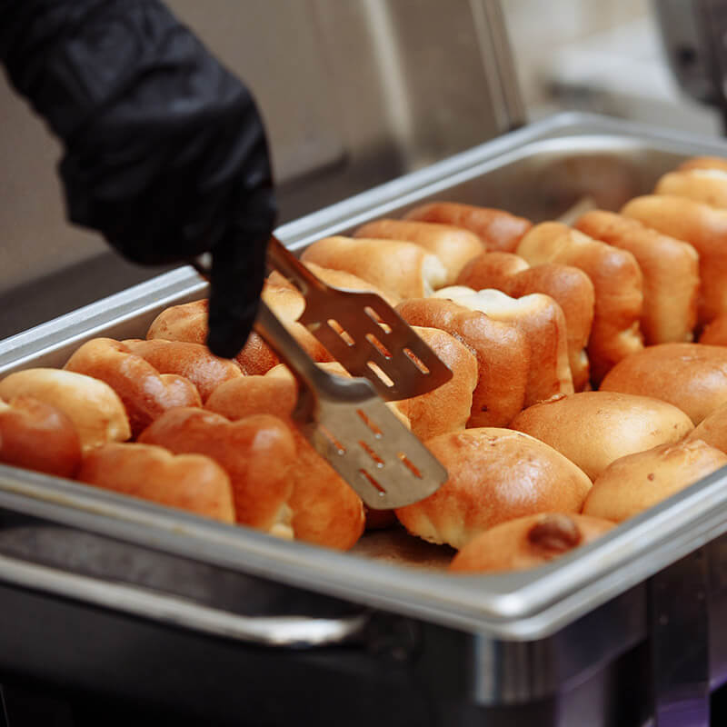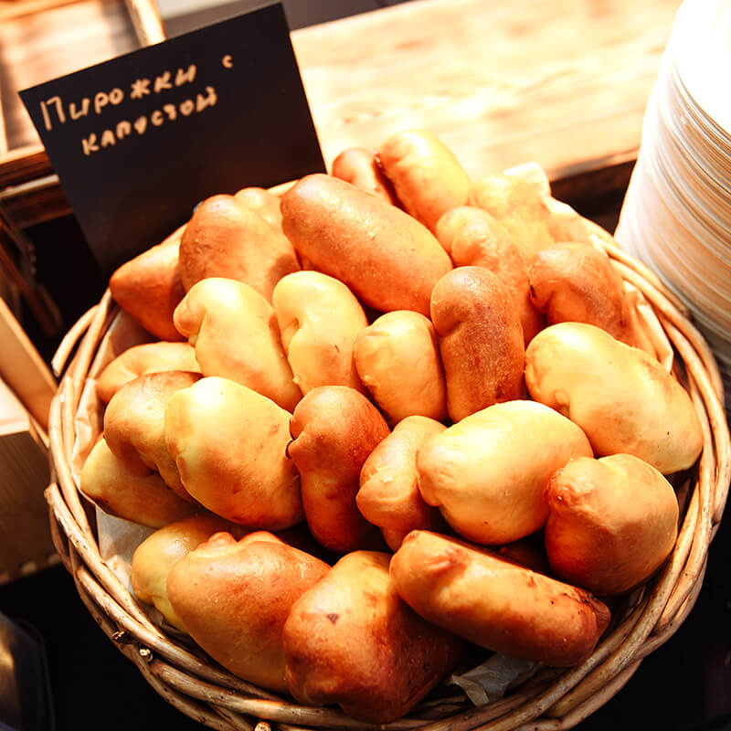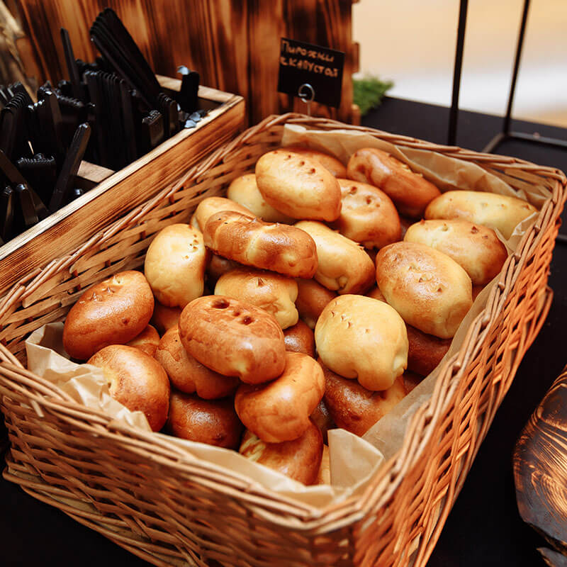 У нас большой выбор пирожков на любой вкус: мясные, овощные, сладкие. Мы можем подать их горячими в мармитах или красиво оформить на столе, чтобы ваши гости оценили и вкус, и подачу.